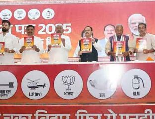 ಪಾಟ್ನಾ: ಬಿಹಾರ ವಿಧಾನಸಭೆ ಚುನಾವಣೆಗೆ ಎನ್ಡಿಎ ಶುಕ್ರವಾರ ತನ್ನ ಪ್ರಣಾಳಿಕೆಯನ್ನು ಬಿಡುಗಡೆ ಮಾಡಿದ್ದು, ಒಂದು ಕೋಟಿ ಯುವಕರಿಗೆ ಉದ್ಯೋಗ, ಒಂದು ಕೋಟಿ ಲಕ್ಷಪತಿ ದೀದಿ, ನಾಲ್ಕು ನಗರಗಳಲ್ಲಿ ಮೆಟ್ರೋ ರೈಲು ಸೇವೆಗಳು ಮತ್ತು ರಾಜ್ಯದಲ್ಲಿ ಏಳು ಅಂತರರಾಷ್ಟ್ರೀಯ ವಿಮಾನ ನಿಲ್ದಾಣಗಳನ್ನು ನಿರ್ಮಿಸುವ ಭರವಸೆ ನೀಡಿದೆ. ಏಳು ಎಕ್ಸ್ಪ್ರೆಸ್ವೇಗಳು, 10 ಕೈಗಾರಿಕಾ ಪಾರ್ಕ್ಗಳು,